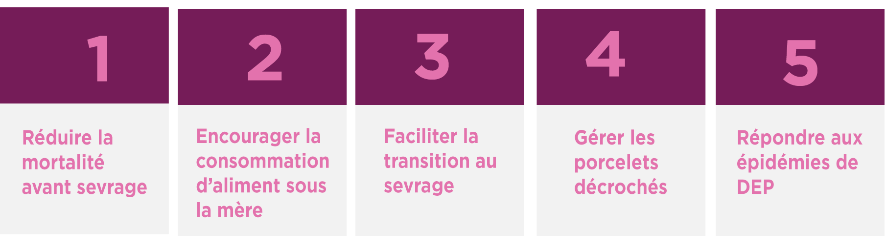 Objectif : Réduire la mortalité des porcelets (et augmenter le poids au sevrage lorsque le protocole de sevrage est utilisé).