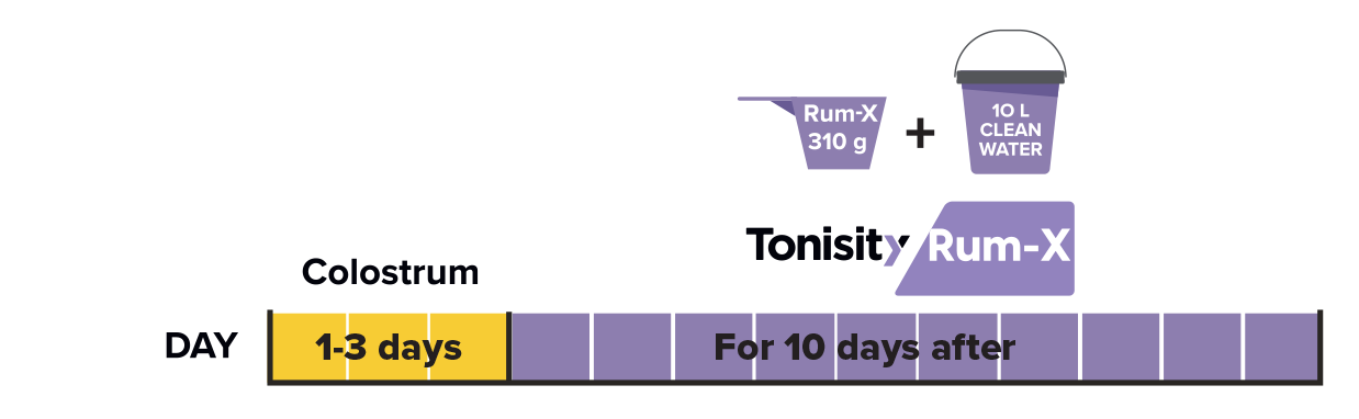 A highly-palatable isotonic protein solution supplying essential nutrients to the gut of young ruminants from day 2 of life.